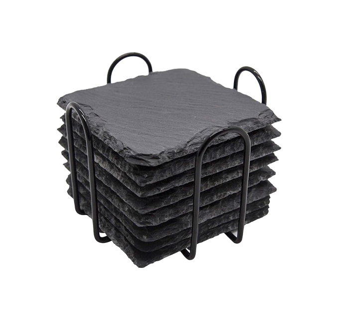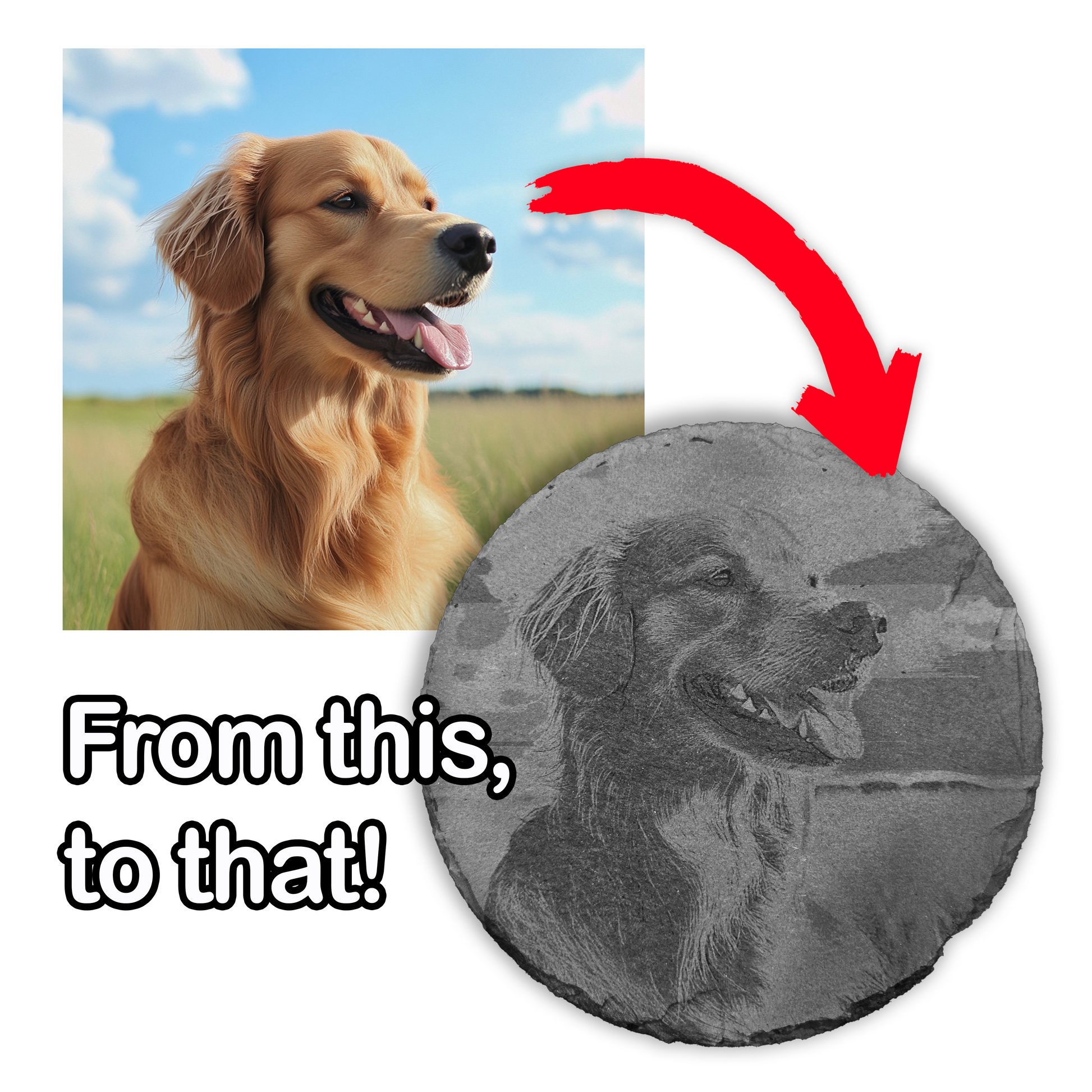 Custom laser-engraved slate coasters made from natural slate. Available in round or square 4-inch sizes, these coasters can be personalized with your own uploaded file—whether it's a unique design, logo, text, or photo. Durable and stylish, they're a perfect fit for any surface while protecting it from moisture and heat. Stays looking elegant whether you're entertaining guests or enjoying a quiet moment at home.